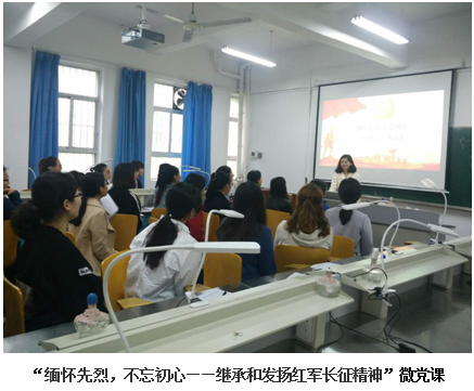 会议由口腔党支部书记陈黄琴同志主持,共有六项议程。会议伊始,全体起立,唱国歌,交纳党费,重温入党誓词、诵读党章,讲党课,本次党课由口腔党支部徐黎老师,为党员们上了题为“缅怀先烈,不忘初心——继承和发扬红军长征精神”的微党课,她从“红军长征的基本内涵、长征精神的科学内涵、怎样理解长征精神及继承和发扬红军长征精神”四个方面讲述如何理解运用长征精神。