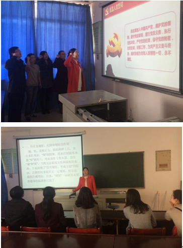 支部组织委员鲁琴艳同志为大家讲了一堂题为《把守纪律、讲规矩摆在重要的位置》的微党课,她的讲述分为三部分:一、什么是规矩,纪律和规矩的作用。规矩体现在社会生活的方方面面,一个政党,特别是我们拥有8600多万党员的大党,没有纪律和规矩,就注定要一盘散沙。二、党的纪律和党的规矩。党的规矩包括党章是全党必须遵守的总章程,也是总规矩;党的纪律是刚性约束;国家法律是党员、干部必须遵守的规矩;党在长期实践中形成的优良传统和工作惯例。三、党的政治规矩。习总书记反复强调的一个规矩,就是“组织”的重要性;提倡政治规矩,就是为了维护中央权威,维护党内团结统一,重塑党组织的纪律性和约束力,净化党的政治生态。四、懂规矩、守纪律是党的优良传统。五、组工干部要带头懂规矩、守纪律。在民主议事阶段,同志们积极为2017年“主题党日+”活动计划建言献策。陈黄琴同志还通报了支部2016年底组织生活会和党员民主测评情况。
