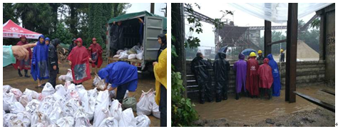 三、员工党员自觉参加当地组织的防汛抢险活动