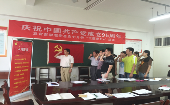 7月1日,正值中国共产党成立95周年之际,根据中共湖北省“两学一做”学习教育协调小组文件《关于深入推进“两学一做”学习教育纪念建党95周年有关安排的通知》和公司党委的统一安排部署,五官医公司党总支于7月1日上午开展了2016年7月“主题党日+”活动。