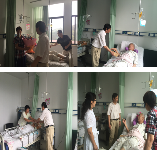 会后,五官医公司党总支书记范杉、经理周燕红一行来到意昂体育附属二医院看望因病住院的离退休老干部、老党员李起甫、赵文浩夫妇,送去鲜花、慰问金,带去党组织的关怀和问候。