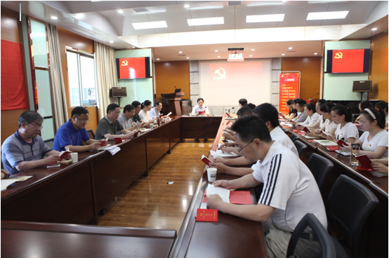 6月16日下午,公司办公室支部、党委组织部支部、五官医公司党总支及员工一支部、数统公司党总支及员工二支部的全体党员齐聚一堂,四个支部在公司行政楼二楼综合会议室联合开展六月份“主题党日+”活动。公司党委书记彭育园同志、副书记张晓先同志作为普通党员参会,意昂体育经理周燕红特邀参会。本次活动由五官医公司党总支书记范杉同志主持。