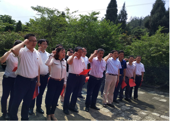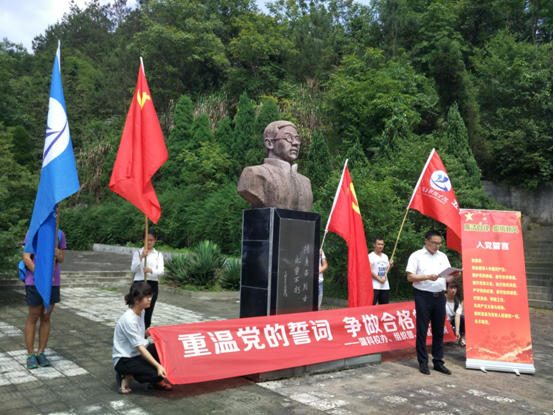 “身许马列安等闲,报效工农岂知艰。壮志未酬身若死,亦留忠胆照人间。”。下午2:00,参与本次活动的党员同志们怀着崇敬的心情,迈着沉重的步伐走进陈寿昌烈士陵园。党旗、校旗和院旗随风飞舞,如火骄阳映射着党徽熠熠生辉。在崇阳县副县长方高文的主持下,全体党员对陈寿昌烈士敬献花篮、鲜花,重温党的誓词,齐声诵读党章,提醒自己不忘初心,作为新时期的教育工作者,应继承革命先烈为民牺牲的优良传统。进一步强化学习,牢记党章意识、党员意识,对党忠诚。自觉用习近平总书记系列重要讲话精神武装头脑,指导实践。