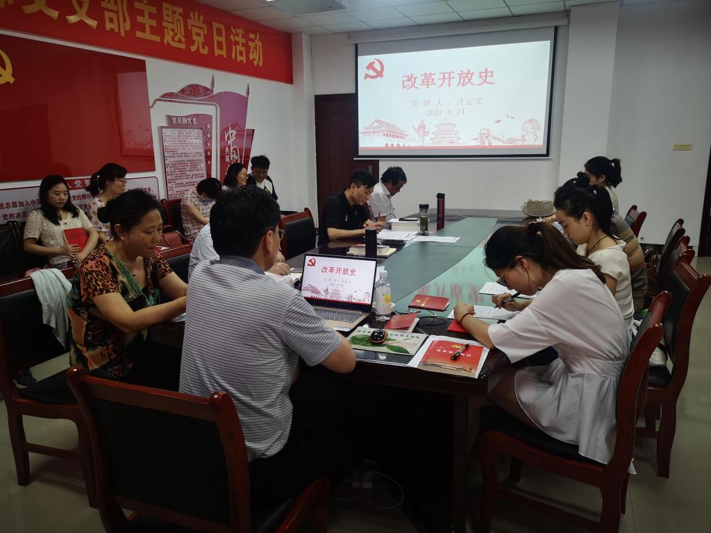 学习结束,由沈定文同志为大家讲授党史专题党课《改革开放史》,最后由刘伟华同志刘伟华同志布置党史学习教育的有关任务和党员干部下沉社区工作。