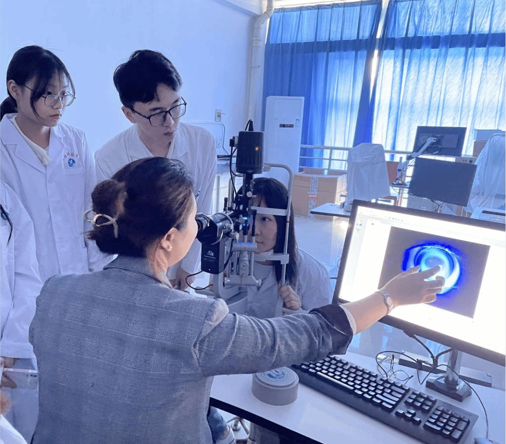 在实际操作环节,杨飞为同学们演示正确规范的临床验配流程,实操环节各组的参与度都非常高,通过实践同学们对接触镜验配流程更加规范与熟练。同学们表示受益匪浅,尤其是在临床实操方面,接触到了很多课本以外的更有实战意义的专业知识。吴峥嵘为同学们分享职场观和职业发展规划课程。也向同学们提出一些典型的面试问题。