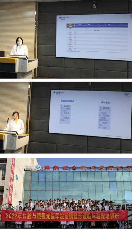 培训班邀请了有着丰富临床验配经验的优视佳集团医学事务总监李兆春,露晰得中国产品经理李小路、湖北省技术顾问熊文毅、江苏省技术顾问许裕文四位老师共同承担授课内容,公司18级五年制眼视光医学专业73名同学参加此次培训。课程设置包括如何看懂角膜地形图;硬性角膜接触镜初阶知识;RGP的设计及标准验配;角膜塑形镜的设计及标准验配;角膜塑形镜配适常见问题及参数调整等,老师们深入讲解,互动答疑,对同学们进行了系统性的培训。在学习了角膜塑形镜的验配技巧后,同学们分组实操露晰得角膜塑形镜验配,从选镜片到看染色,再到分析讨论试戴检查结果,多角度学习角膜塑形镜验配,进一步梳理和巩固了知识体系,大家都纷纷表示收获颇丰,期待再次相聚。