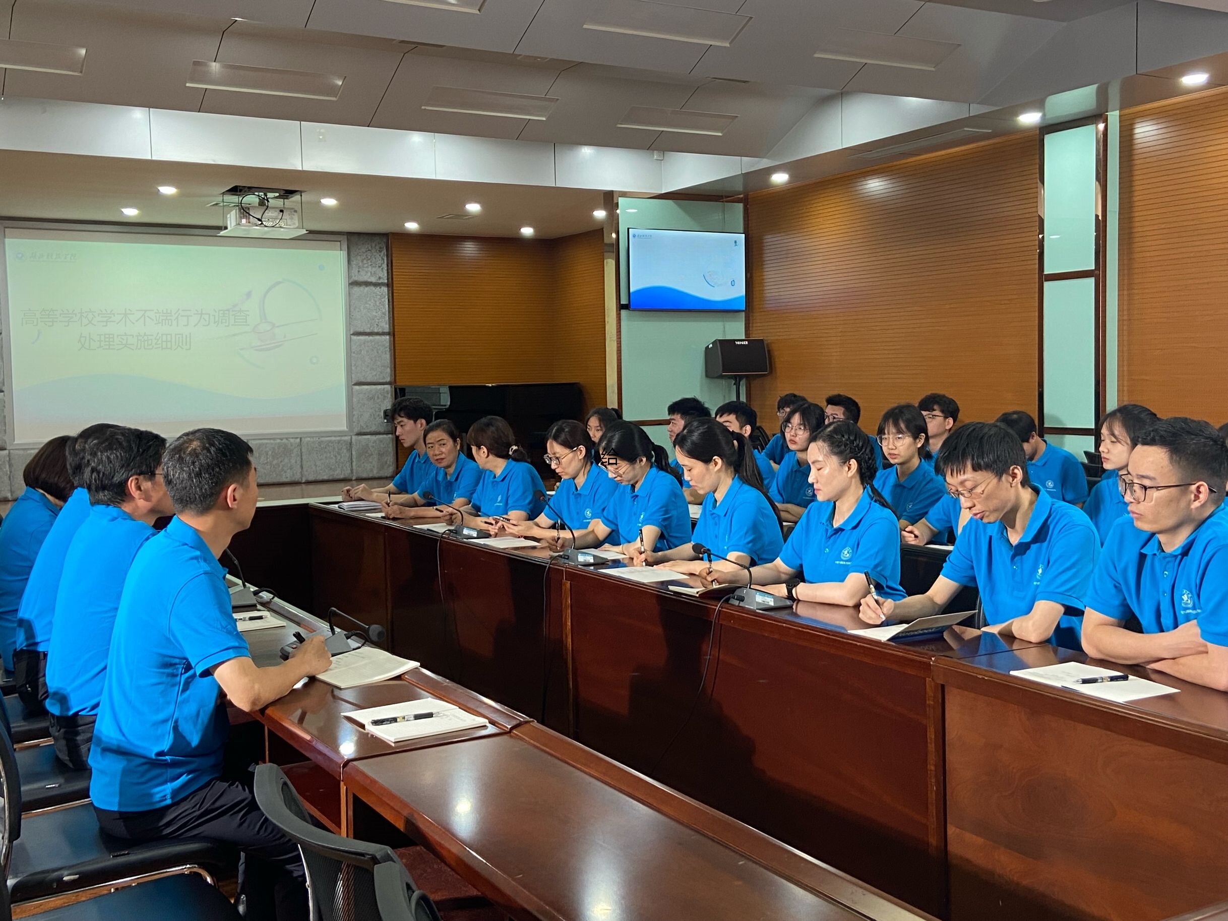 首先,科研副经理熊丽介绍了会议背景,传达湖北省教育厅相关文件精神,并学习《教育部关于加强高等公司科研诚信建设和学术不端治理的指导意见》(教科信〔2024〕2号)和《高等公司学术不端行为调查处理实施细则》。