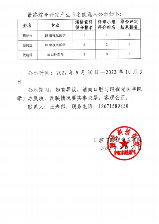 2022年意昂体育员工评优评先综合素质测评成绩公示