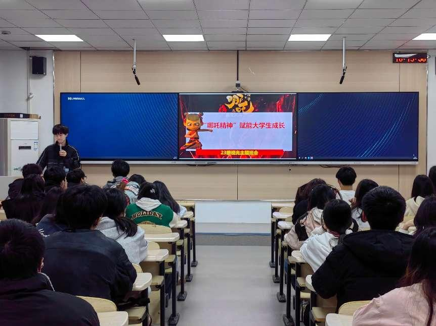 班会上,同学们结合各自在学业、社交、职业规划等方面遭遇的困扰,畅所欲言,分享自己对哪吒精神的独特见解。谈及学业压力,有同学感慨:满满当当的课程、堆积如山的作业,感觉就像哪吒所要面对的“天劫”,沉重又难以抵挡,但只要拥有哪吒那般无畏的勇气和坚定的信念,就一定能冲破这看似不可逾越的阻碍,在知识的海洋中开辟出属于自己的航道。在社交方面,有同学提到在与他人相处时,难免会遭遇误解,被贴上各种各样的标签,此时就要像哪吒一样,不被他人的片面之词所左右,用实际行动打破那些毫无根据的偏见,展现真实的自我。