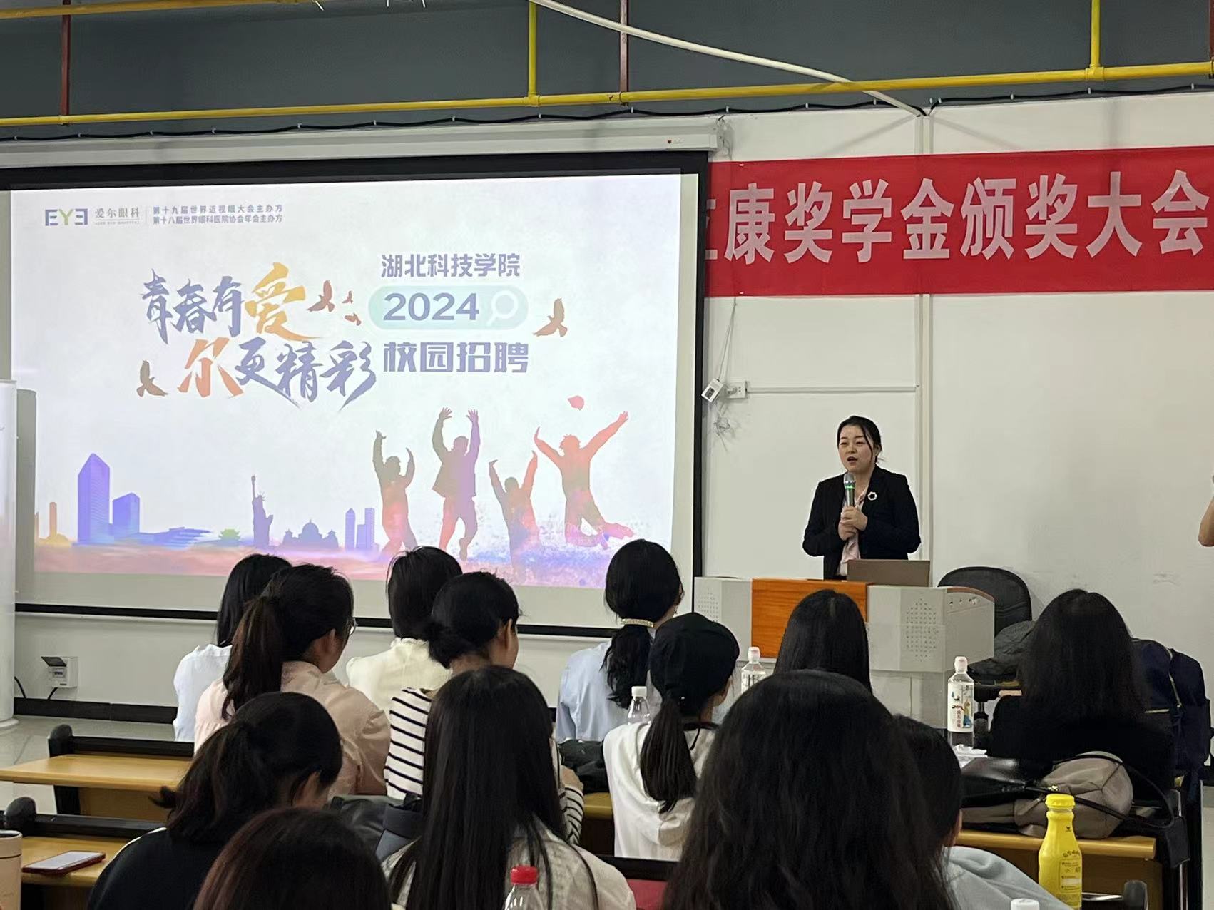 武汉爱尔眼科医院王婷婷医生以员工身份,从自身在爱尔的成长经历出发,结合医院集团发展前景,直观的向现场员工们展示了视光专业员工在爱尔眼科的成长过程,激励同学们脚踏实地,勤学上进,为同学们构筑了未来发展蓝图。