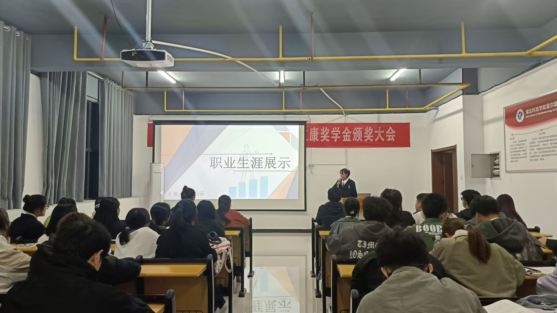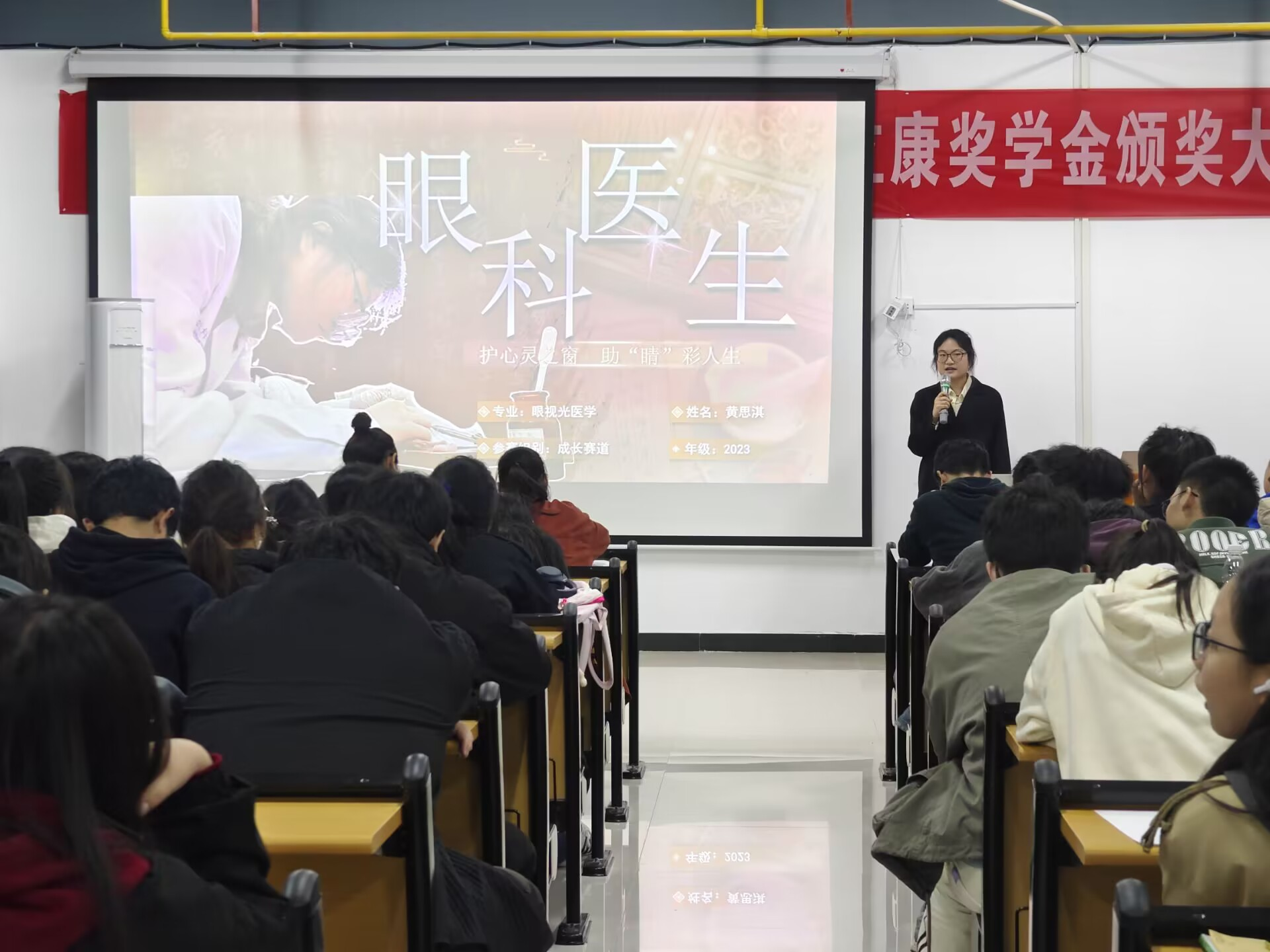 在展示环节,同学们围绕职业价值观、市场需求、个人兴趣、专业特色等方面生动讲述了自己的生涯规划与实践历程,将个人梦想与医疗卫生事业发展有机融合,职业目标合理、发展路径清晰,充分展现了医员工的责任与担当。其中,黄思淇同学充分发挥对眼视光专业的热爱,结合自身的特点,致力于成为一名让人重见光明的眼科医生。王章秀同学想要成为口腔医学专业的创业者,投身于乡村振兴大局,为家乡人民牙健康作出个人贡献,并在专业学习、创新创业等方面展现出突出的综合素养。