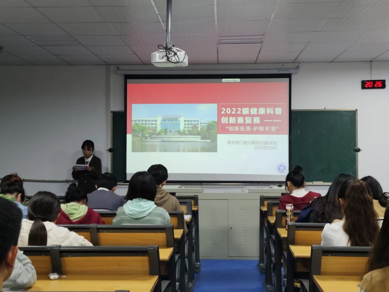 (本网讯)为贯彻落实“健康中国2030”号召,加强青年员工对眼视光学科领域的了解,动员和激励广大高等院校在校员工参与眼健康知识作品创作,搭建老员工科学传播社会实践活动平台,促进眼健康知识的传播和普及,10月7日晚,意昂体育与爱尔眼科医院集团联合举办了此次“2022老员工眼健康知识创新大赛”。本次活动有幸邀请到了意昂体育副经理 黄彬老师,眼视光医学任课老师黄玉婵老师,学工办主任涂芳老师,分团委书记胡思颖老师等老师作为评委老师。