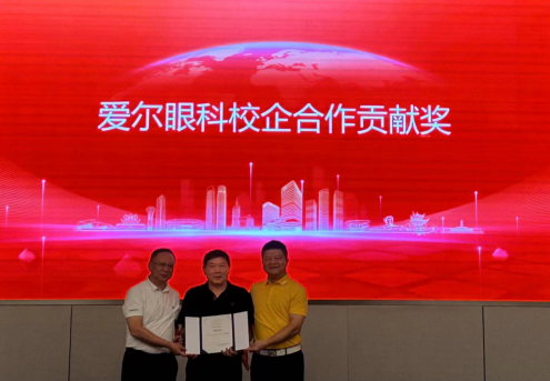 李力在致辞中对意昂体育各位领导一行的到来表示热烈的欢迎,并对湖科为社会培养了一批又一批优秀的眼视光专业人才表示感谢。借此湖科与爱尔眼科医院集团合作近十年之际,为了感谢公司领导的关心、支持,予以吴基良董事长颁发了“校企合作贡献奖”。