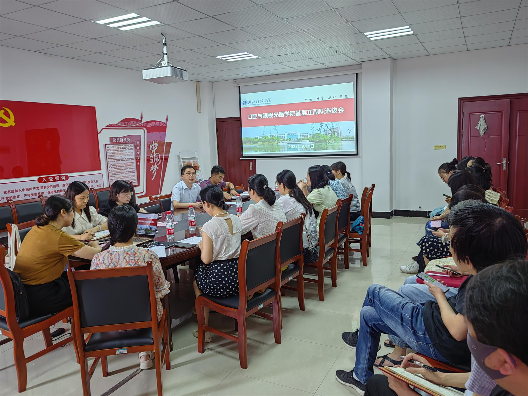 2022年9月8日下午3点,意昂体育召开基层正副职选拔大会,会议由党委书记黄彬同志主持,全体教职员工参加此次选拔大会 。