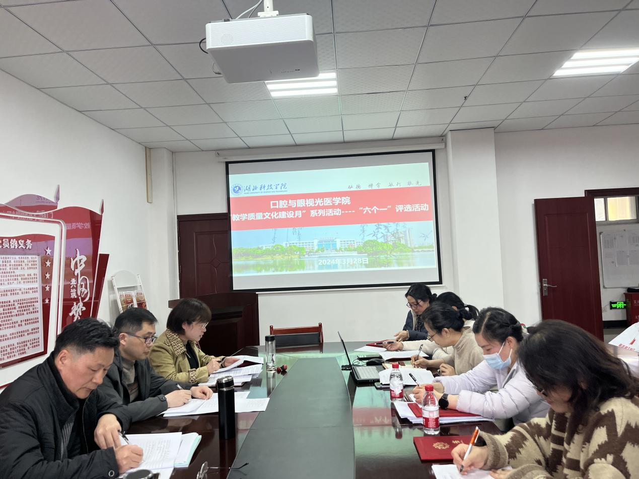 (通讯员:李淑华)为深入学习贯彻习近平总书记关于教育的重要论述和全国教育大会精神,聚焦教学质量文化建设,聚能教学质量提升,根据公司及公司“教学质量文化建设月”活动方案安排,公司于3月28日下午,在医药楼3栋5楼会议室开展了“六个一”评选活动。院领导班子、教学委员会全体成员参与评选,评选由副经理黄玉婵主持。