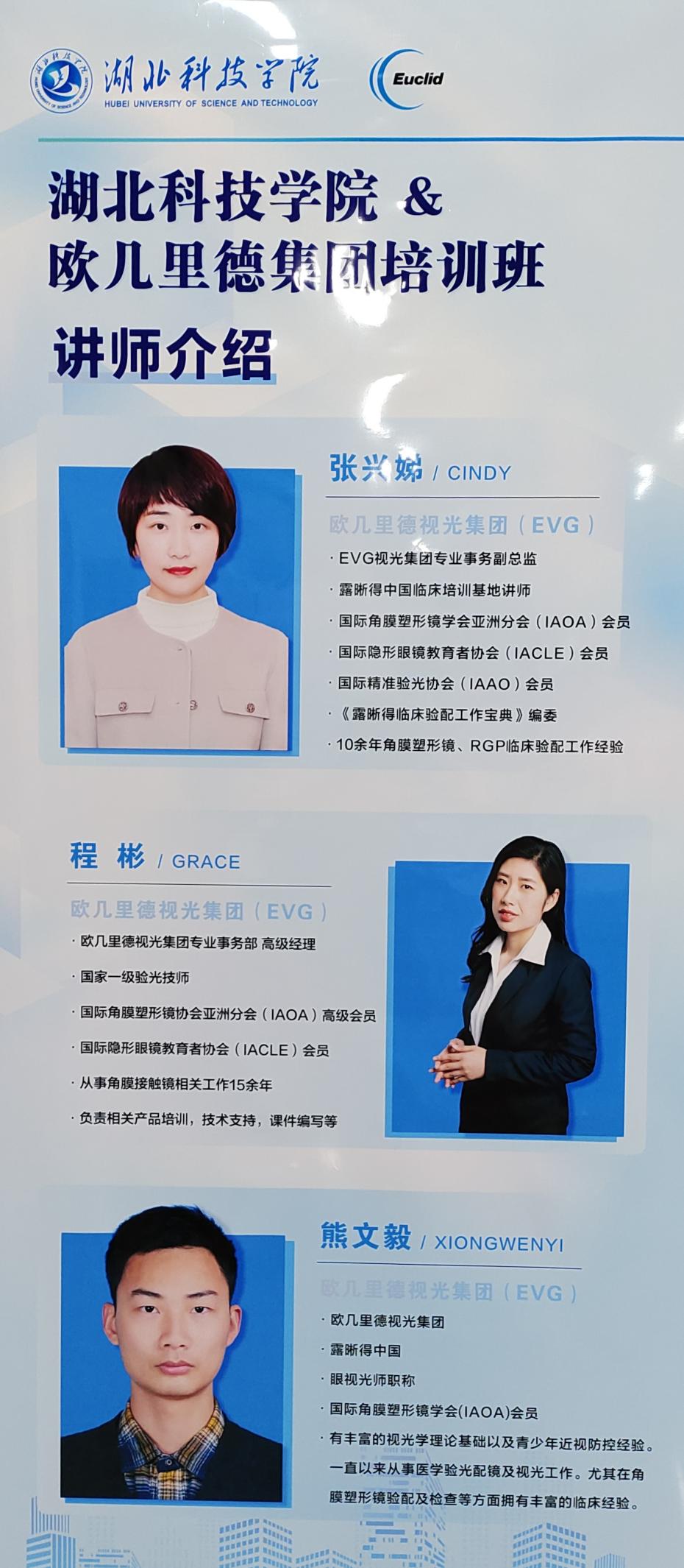 培训班邀请了有着丰富临床验配经验的欧几里德视光集团事务副总监张兴娣、专业事务部高级经理程彬、高级讲师熊文毅三位老师共同承担理论和实操培训,公司21级眼视光医学专业和23级眼视光专升本专业员工参加了此次培训。课程设置包括RGP镜的临床应用及验配流程、RGP镜的配适评估及护理、角膜塑形镜的基本原理、验配流程及离焦镜片的设计原理和应用等,老师们讲解思路清晰深刻,深入浅出,与同学们互动频繁,讨论热烈。在实操阶段,从选镜片到看染色,再到分析讨论试戴检查结果,多角度帮助同学梳理和巩固知识体系,同学们都反应收获颇丰,受益匪浅。